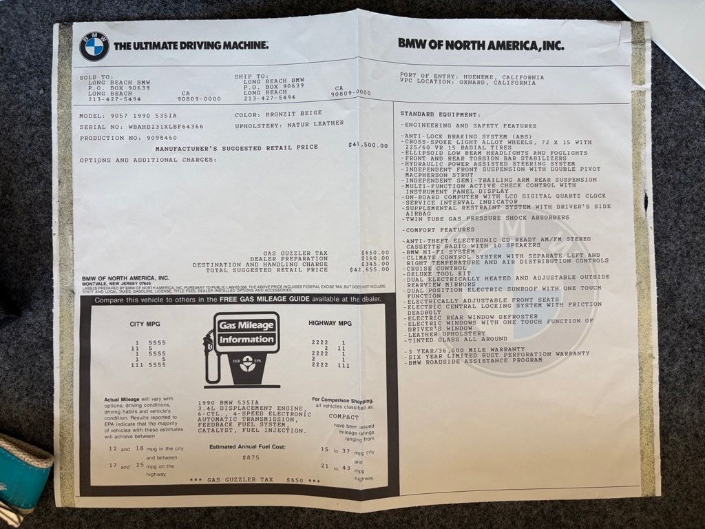 1990 BMW 5 Series 535i â" Bronzit Beige Metallic Clean CARFAX