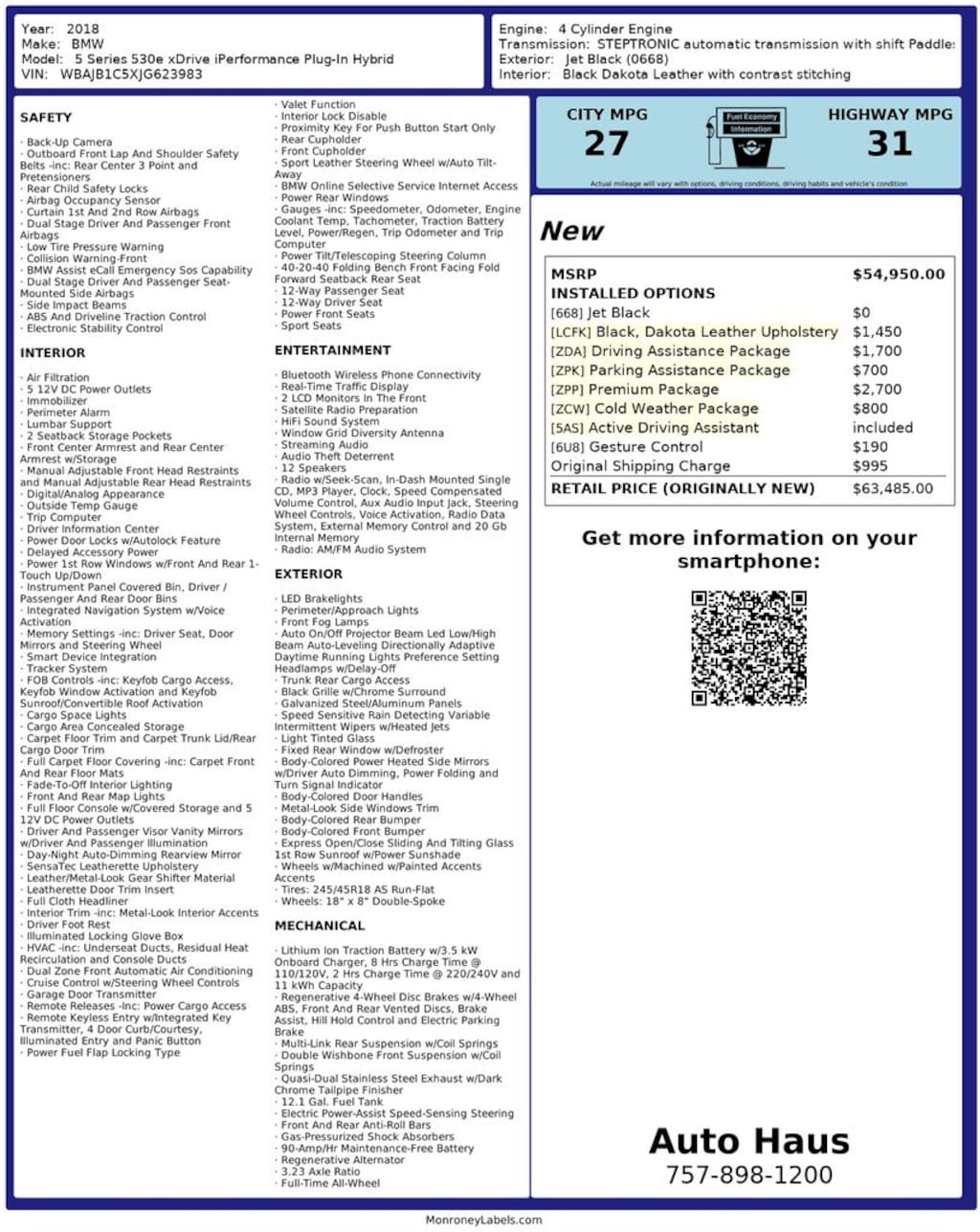 This 2018 BMW 530e xDrive iPerformance blends BMW luxury, intelligent technology, and efficient plug-in hybrid performance. Finished in Jet Black with a Black w/Blue Dakota Leather interior, this sedan delivers premium comfort with confident all-wheel-drive capability.