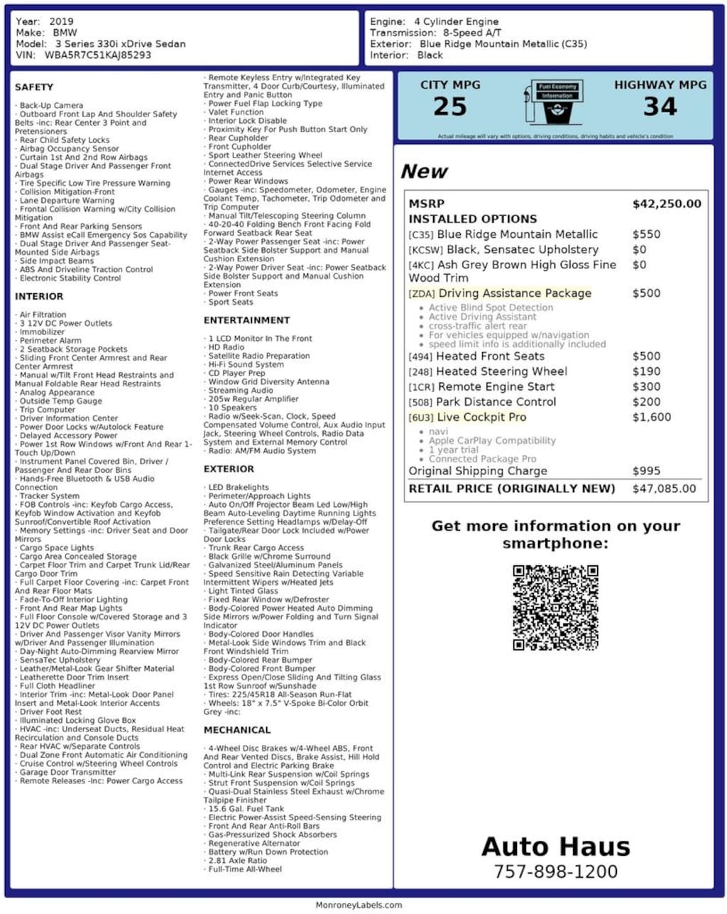 Auto Haus Peace of Mind We Offer a fast and easy way to get the best pre-owned vehicle. No-hassle pricing - Exceptional Value - No uncomfortable negotiations Est 1992 as Hampton Roads Premier Import Vehicle Sales & Service Specialists! Odometer is 13781 miles below market average! 25/34 City/Highway MPG