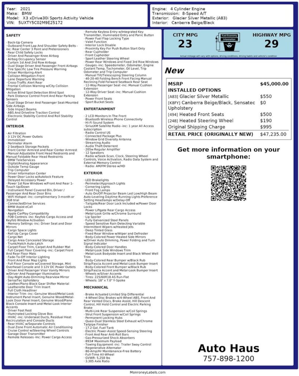 - 23/29 MPG City/Hwy
