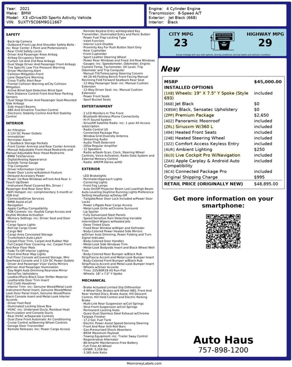 Luxury, technology, and all-weather capability come together in this 2021 BMW X3 xDrive30i. Finished in Jet Black and equipped with BMWâs intelligent xDrive all-wheel-drive system, this X3 delivers confident traction, sharp handling, and refined comfort in a versatile luxury SUV platform.