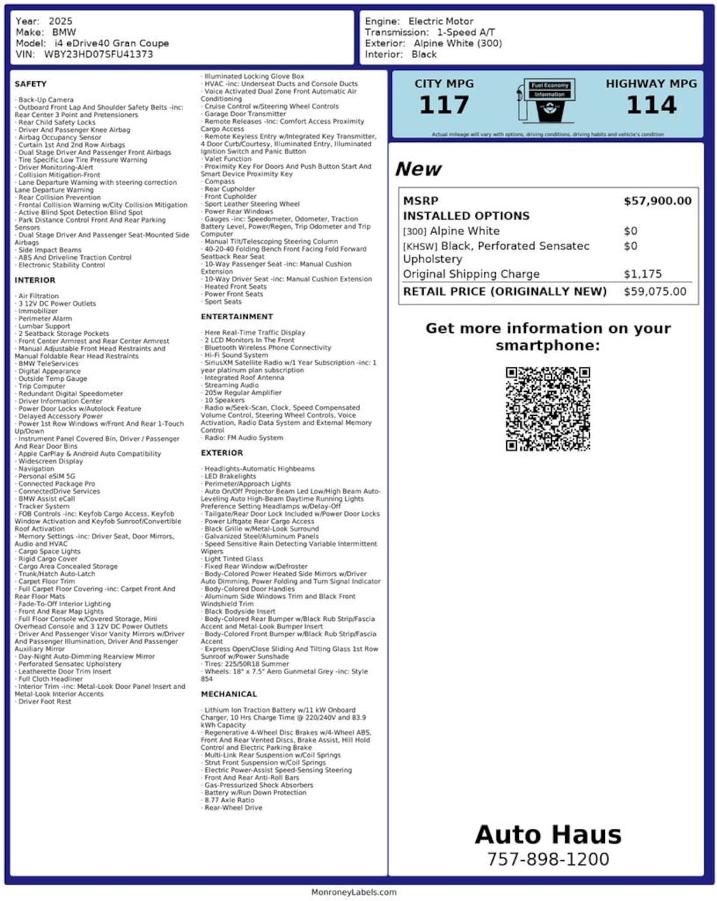 2025 BMW i4 eDrive40 Alpine White RWD Single-Speed Automatic Electric Motor CARFAX One-Owner. Clean CARFAX.