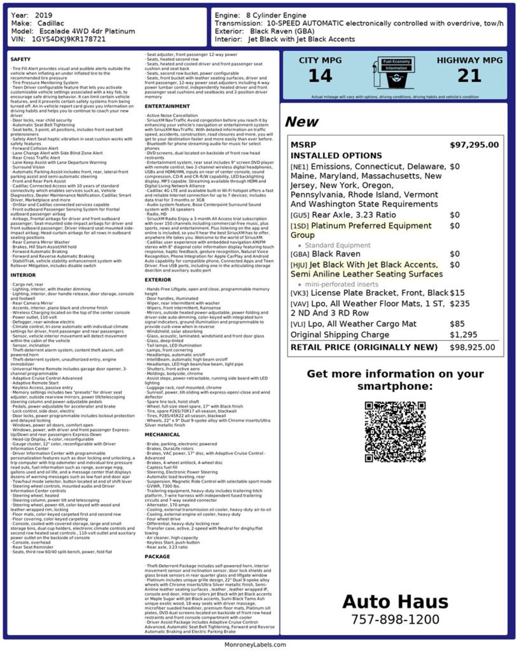 This one-owner Escalade Platinum Edition delivers uncompromising luxury, advanced technology, and commanding presence. Powered by a 6.2L V8 and paired with a 10-speed automatic transmission with overdrive, this 4WD SUV provides strong performance and refined capability. With a clean CARFAX, it offers peace of mind along with exceptional value.