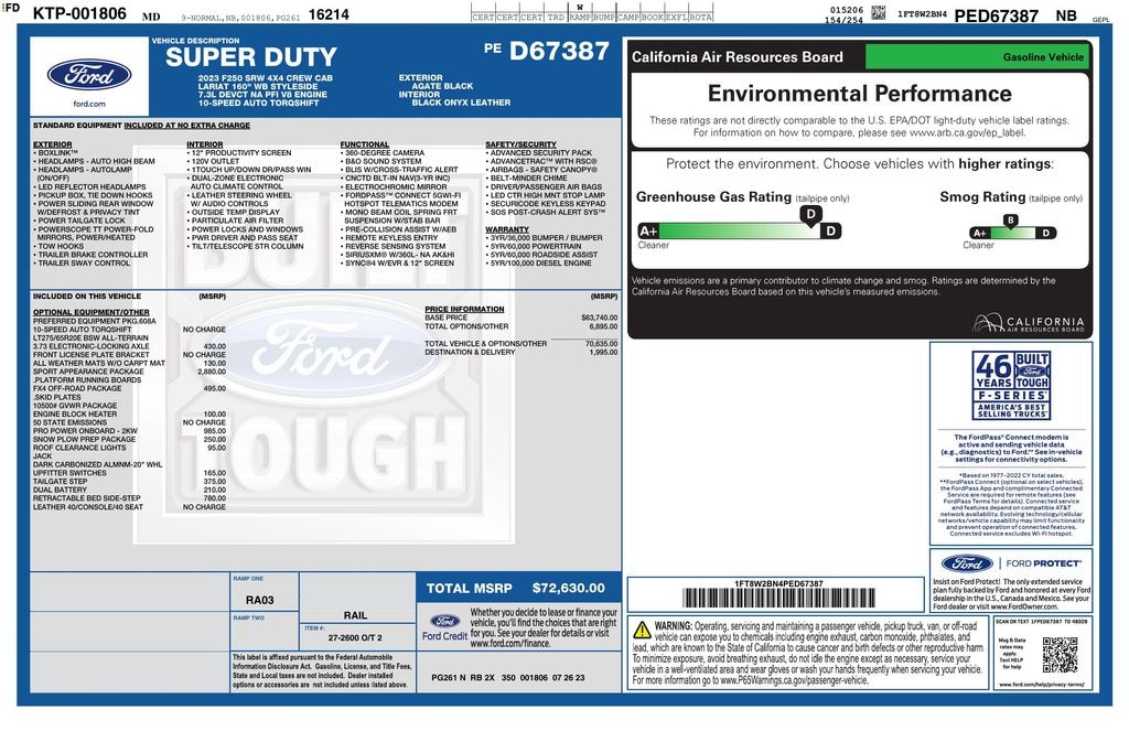 2023 Ford F-250SD Lariat Black Metallic 4WD 10-Speed Automatic 7.3L V8 PFI OHV 16V Federal 430hp Clean CARFAX.