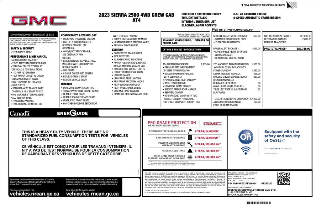 Heavy-duty capability meets premium refinement in this 2023 GMC Sierra 2500HD AT4, finished in striking Ebony Twilight Metallic over Jet Black with Kalahari Accents Perforated Leather-Appointed Seating. Built for serious towing and off-road performance, this AT4 is equipped with the right packages to handle demanding workloads while maintaining upscale comfort.