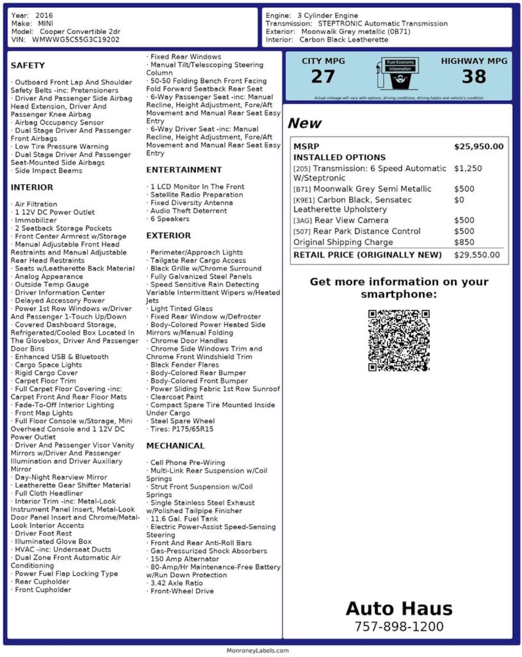 Auto Haus Peace of Mind We Offer a fast and easy way to get the best pre-owned vehicle. No-hassle pricing - Exceptional Value - No uncomfortable negotiations Est 1992 as Hampton Roads Premier Import Vehicle Sales & Service Specialists! Odometer is 4753 miles below market average! 27/38 City/Highway MPG