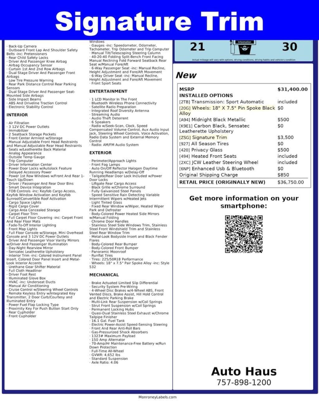 Auto Haus Peace of Mind We Offer a fast and easy way to get the best pre-owned vehicle. No-hassle pricing - Exceptional Value - No uncomfortable negotiations Est 1992 as Hampton Roads Premier Import Vehicle Sales & Service Specialists! Odometer is 4277 miles below market average! 22/31 City/Highway MPG