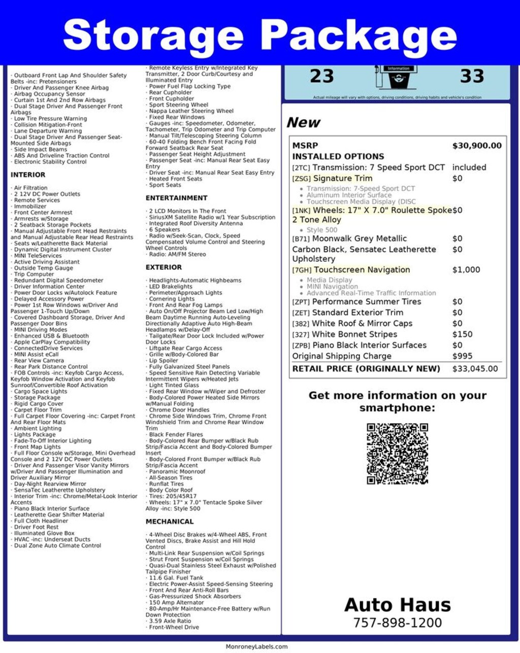 - 23/33 MPG City/Hwy