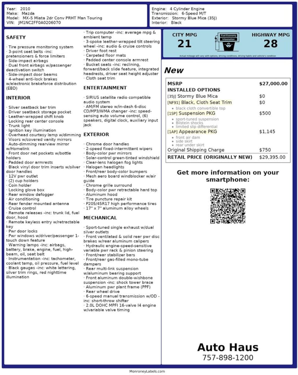 Used 2010 MazdaMazda MX-5 Miata Touring