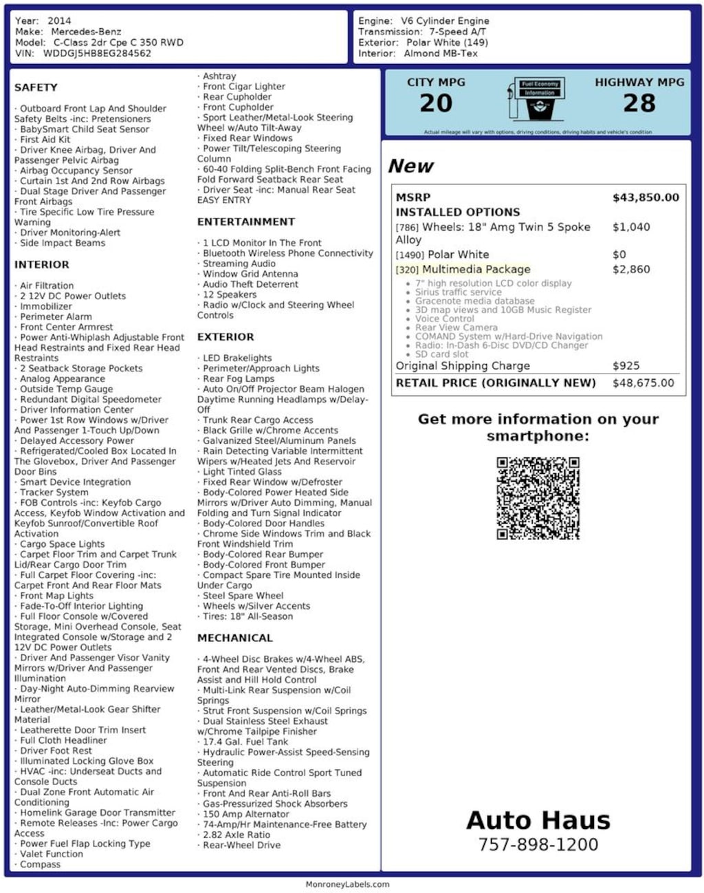 - 20/28 MPG City/Hwy