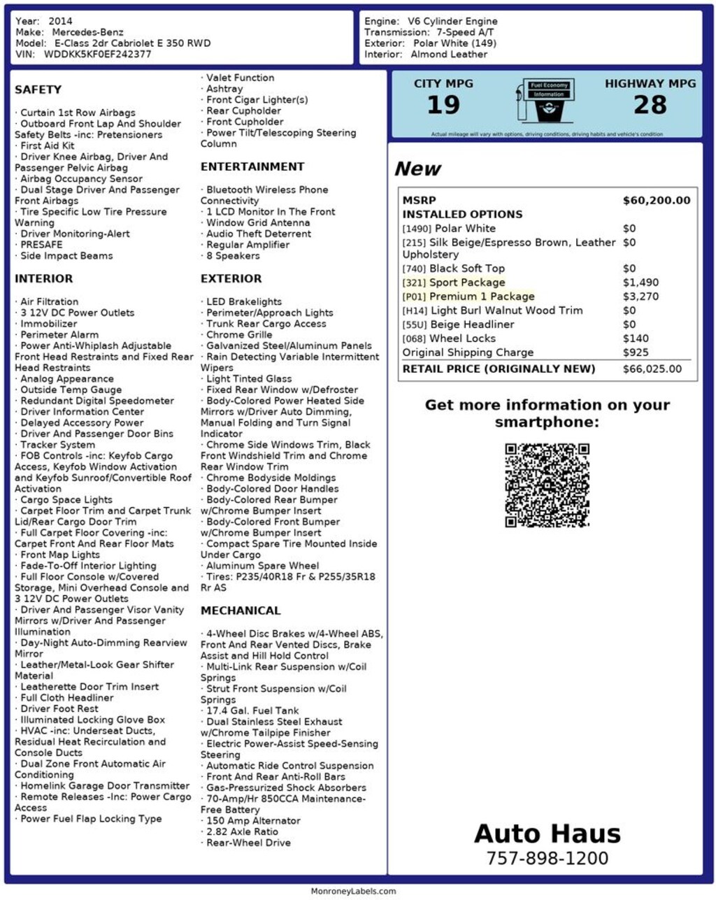 Luxury, performance, and timeless design come together in this stunning 2014 Mercedes-Benz E 350 finished in Polar White. Powered by a refined 3.5L V6 Direct Injection engine paired with a smooth 7-Speed Automatic transmission, this rear-wheel-drive E-Class delivers both confident performance and everyday comfort.