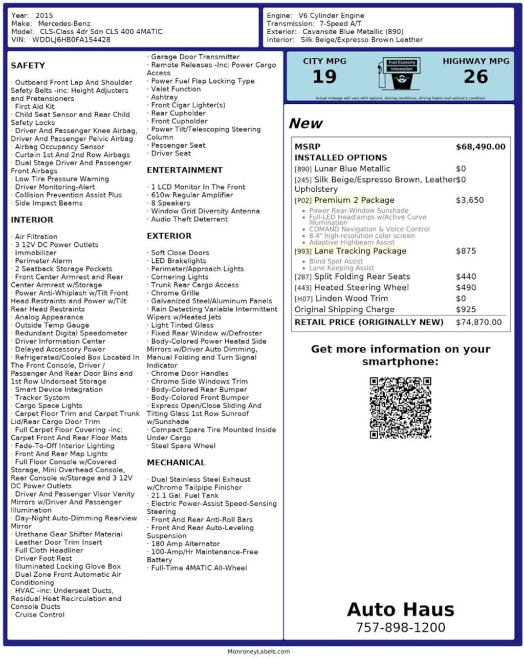 Used 2015 Mercedes-BenzCLS-Class CLS 400