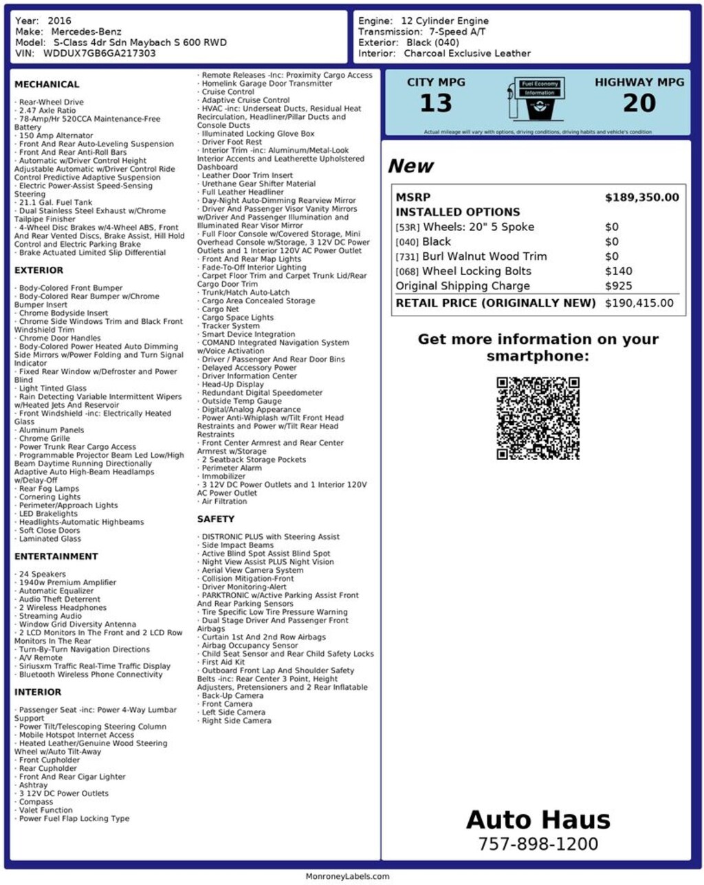 Used 2016 Mercedes-BenzS-Class Maybach S 600