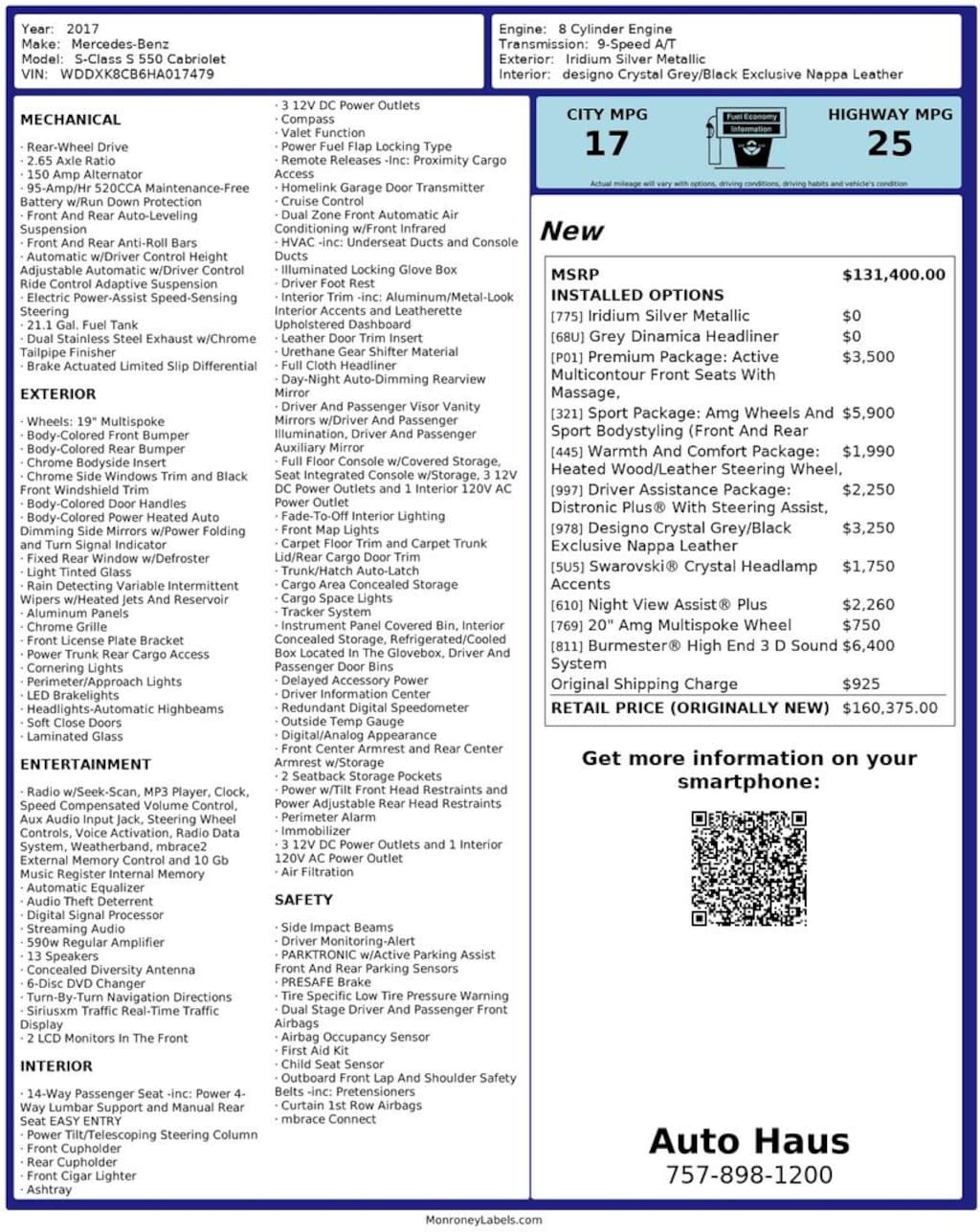 2017 Mercedes-Benz S-Class S 550 Iridium Silver Metallic RWD 9-Speed Automatic 4.7L V8 BiTurbo Clean CARFAX.