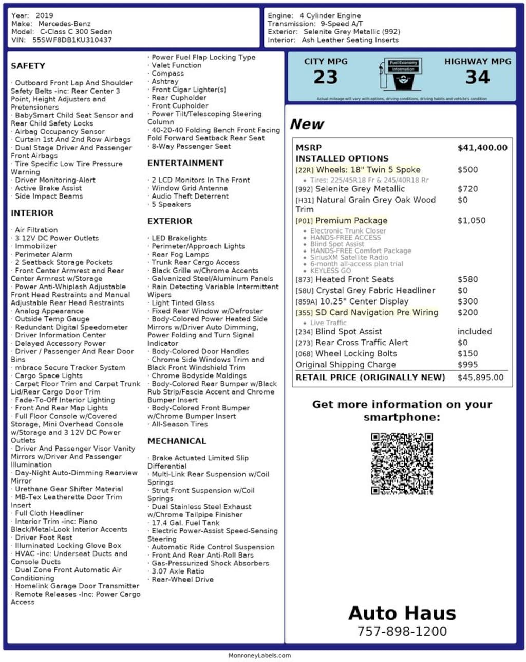 23 City / 34 Highway MPG