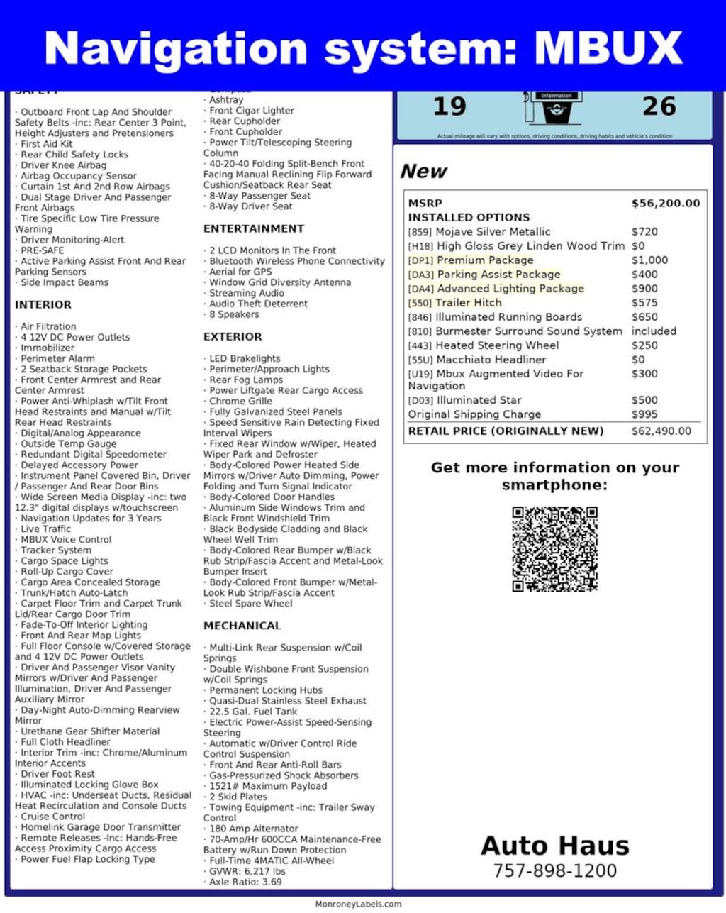 - 19/26 MPG City/Hwy