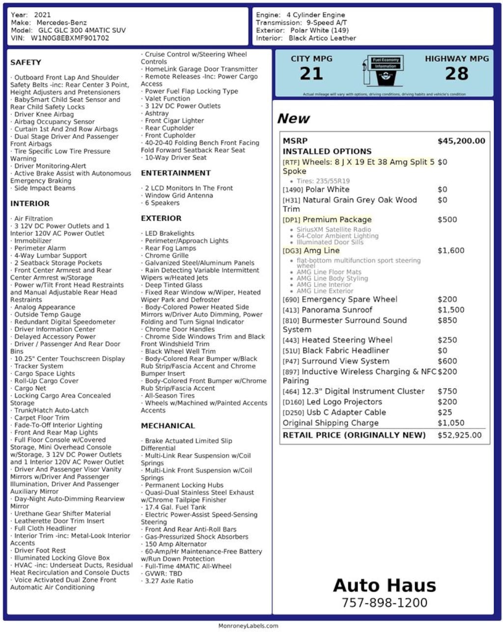Powered by a responsive 2.0L Turbocharged I4 paired with a smooth 9-Speed Automatic Transmission, the intelligent 4MATIC® all-wheel drive system delivers confident handling in all driving conditions while maintaining impressive efficiency at 21 MPG City / 28 MPG Highway.