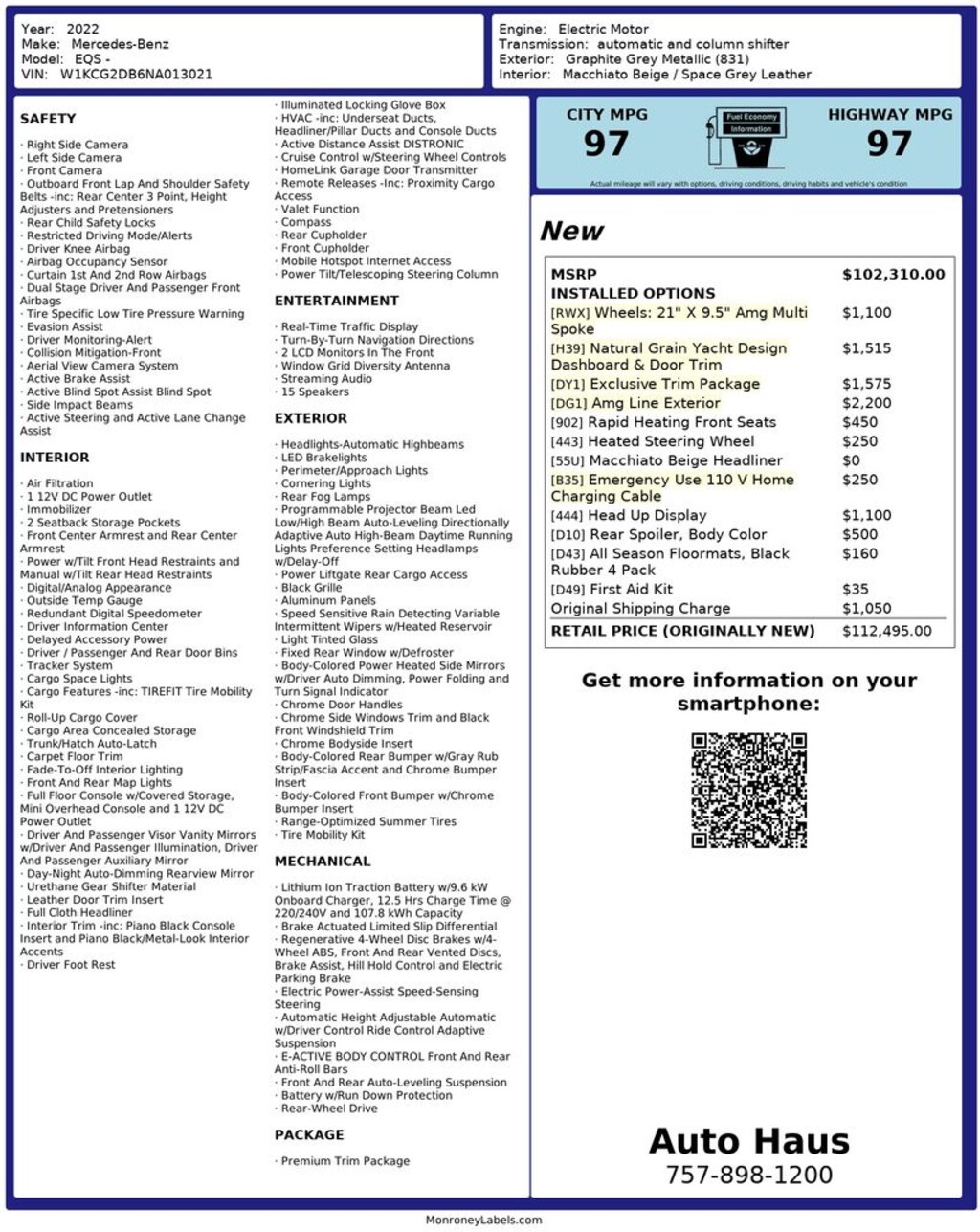 With remarkable efficiency rated at 97 MPGe city / 97 MPGe highway, the EQS combines performance, luxury, and cutting-edge electric technology.
