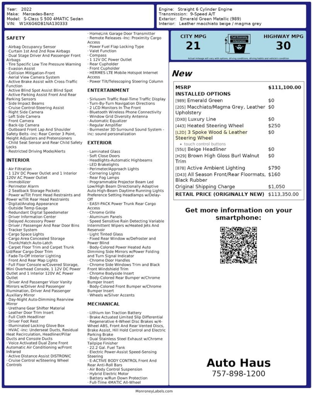 Experience flagship luxury and advanced engineering in this exceptional 2022 Mercedes-Benz S 500 4MATIC®. Finished in striking Emerald Green Metallic and paired with a Macchiato Beige/Magma Gray leather interior, this S-Class delivers refined comfort, cutting-edge technology, and confident all-wheel-drive performance.