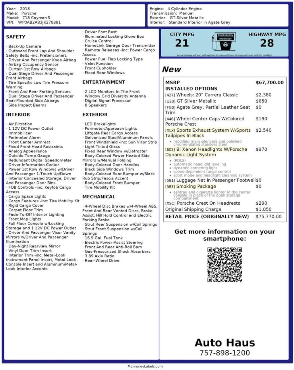Used 2018 Porsche718 Cayman S