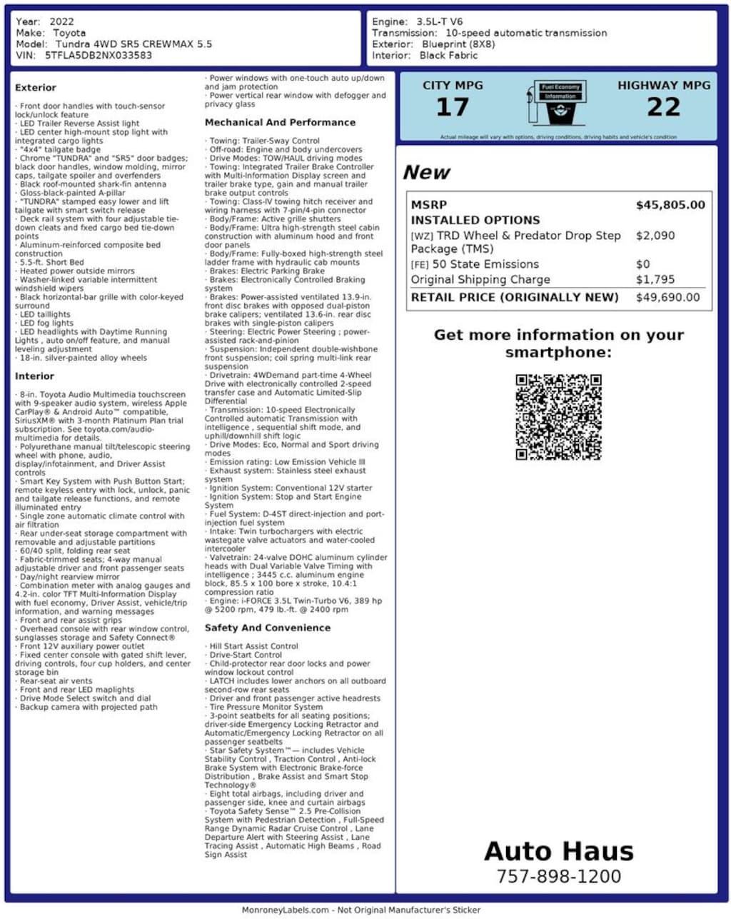 Completely redesigned and built tougher than ever, this 2022 Toyota Tundra SR5 in bold Blueprint delivers next-generation performance, technology, and durability.
