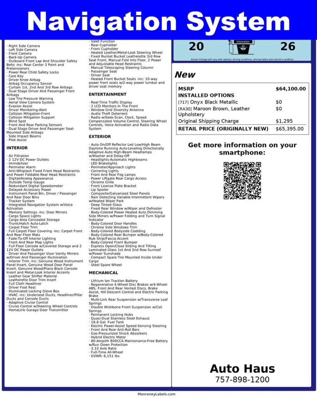 - 20/26 MPG City/Hwy